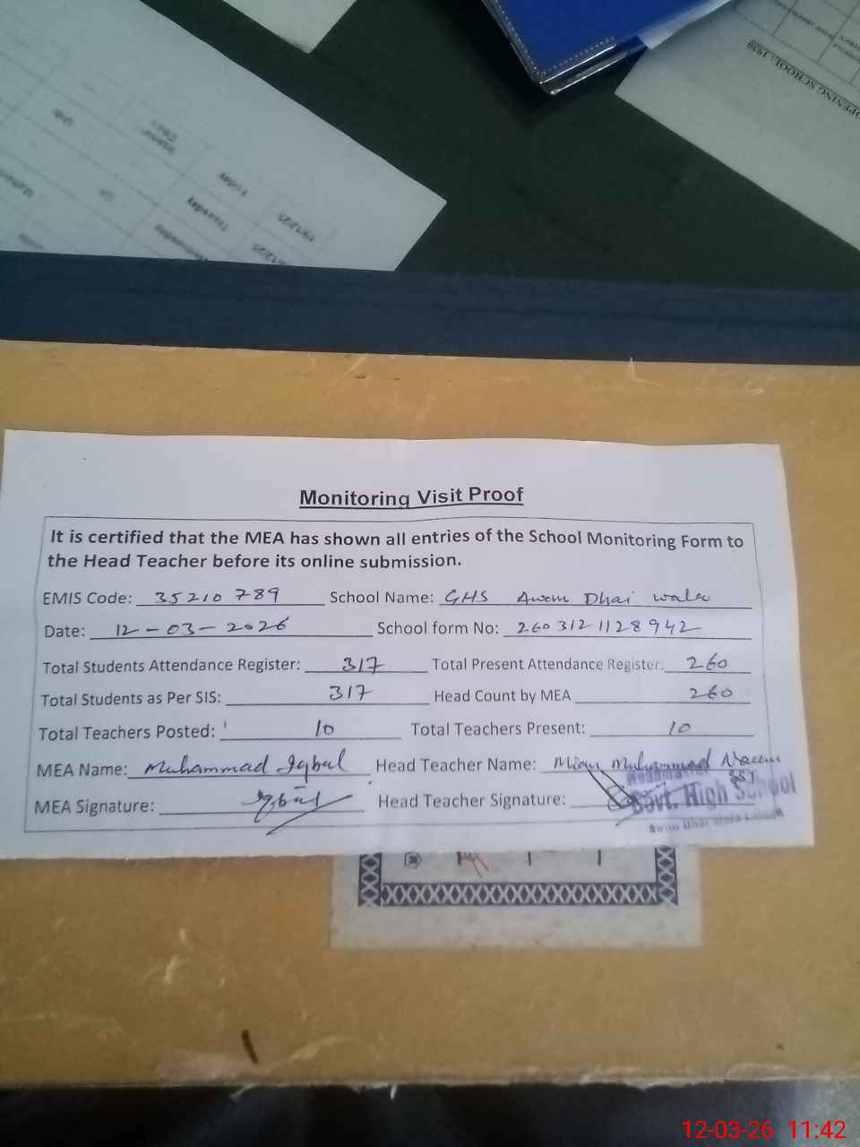 | EMIS Code: 35210789 | Name of School: GHS AWAN DHAI WALA(Newly upgraded) | |||
