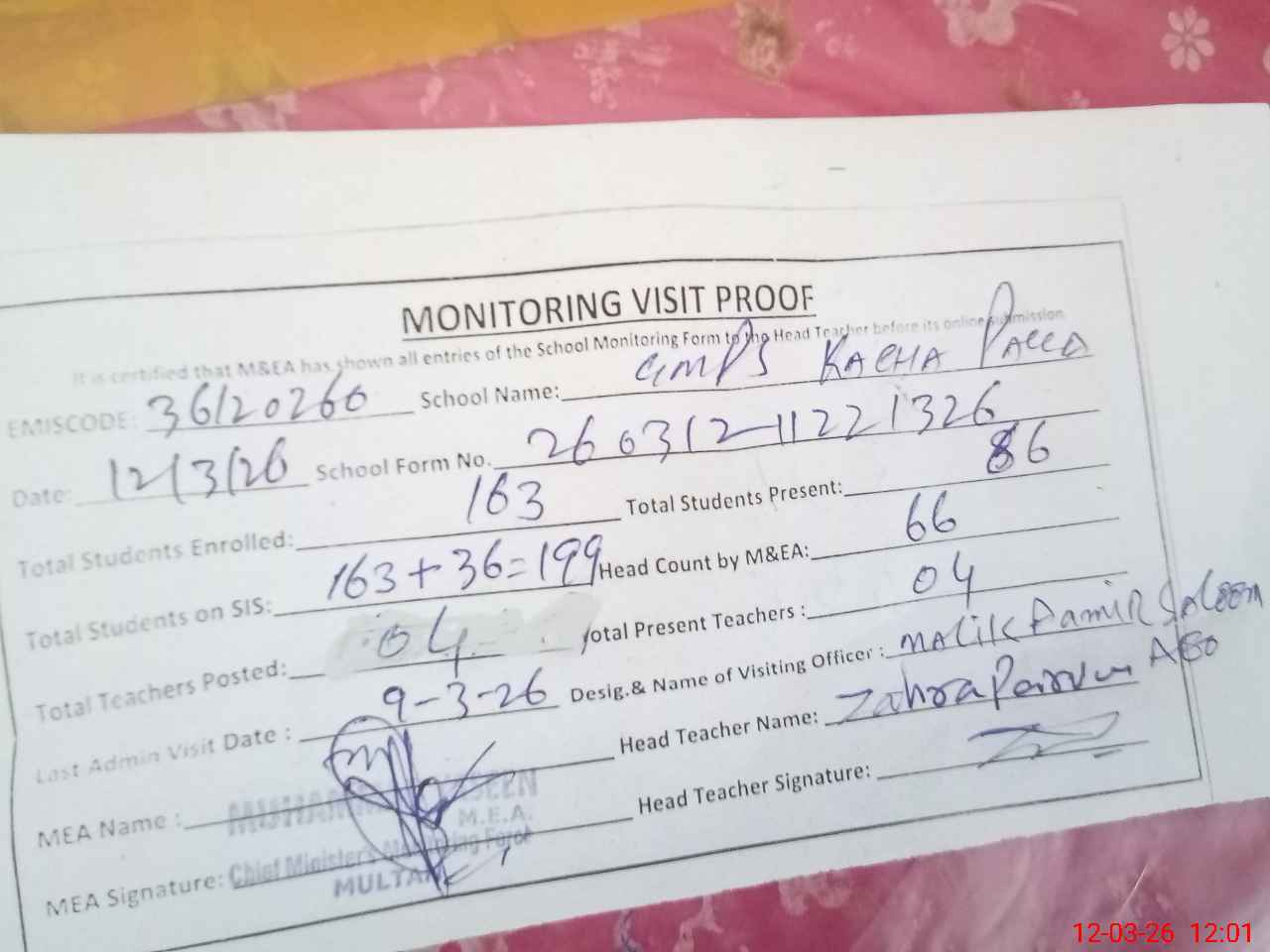 | EMIS Code: 36120260 | Name of School: GMPS KACHA PACCA (BASTI MITHU GHARBI) | |||