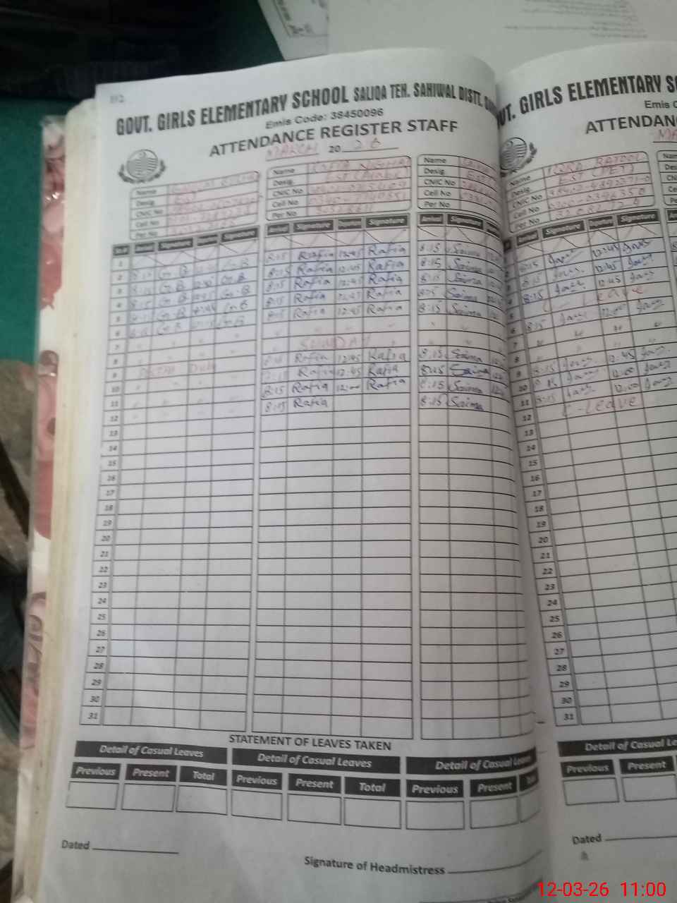 | Name: MU**** SH**** Designation: (School Headmaster's/Headmistress's) SST(Gen) Phone/Cell Number: 03**** |