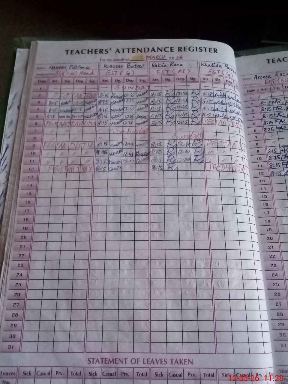 | 38**** | Kh**** Pa**** | EST General Arts | Regular | 0 | 0 | 0 | 0 | 0 | 0 | 0 | 0 | 0 | Exam Duty |