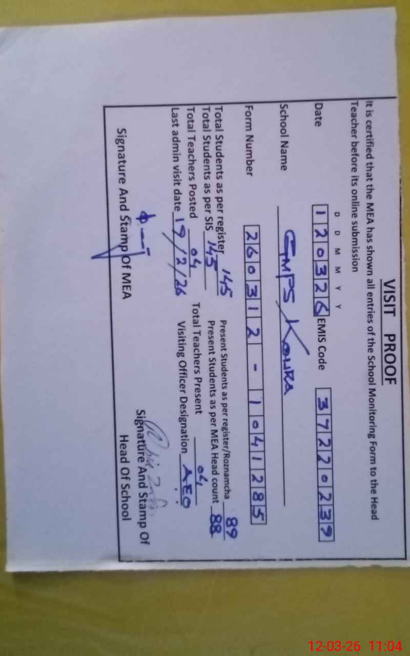 | Attendance Register | Head Teacher | MEA with School | Visit Proof |