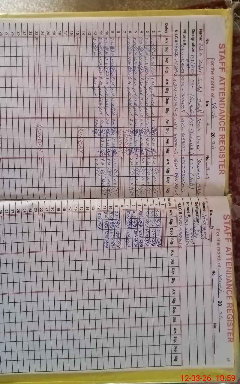 | CNIC | Full Name | Designation | R/C | Absence During Last Calender Month |