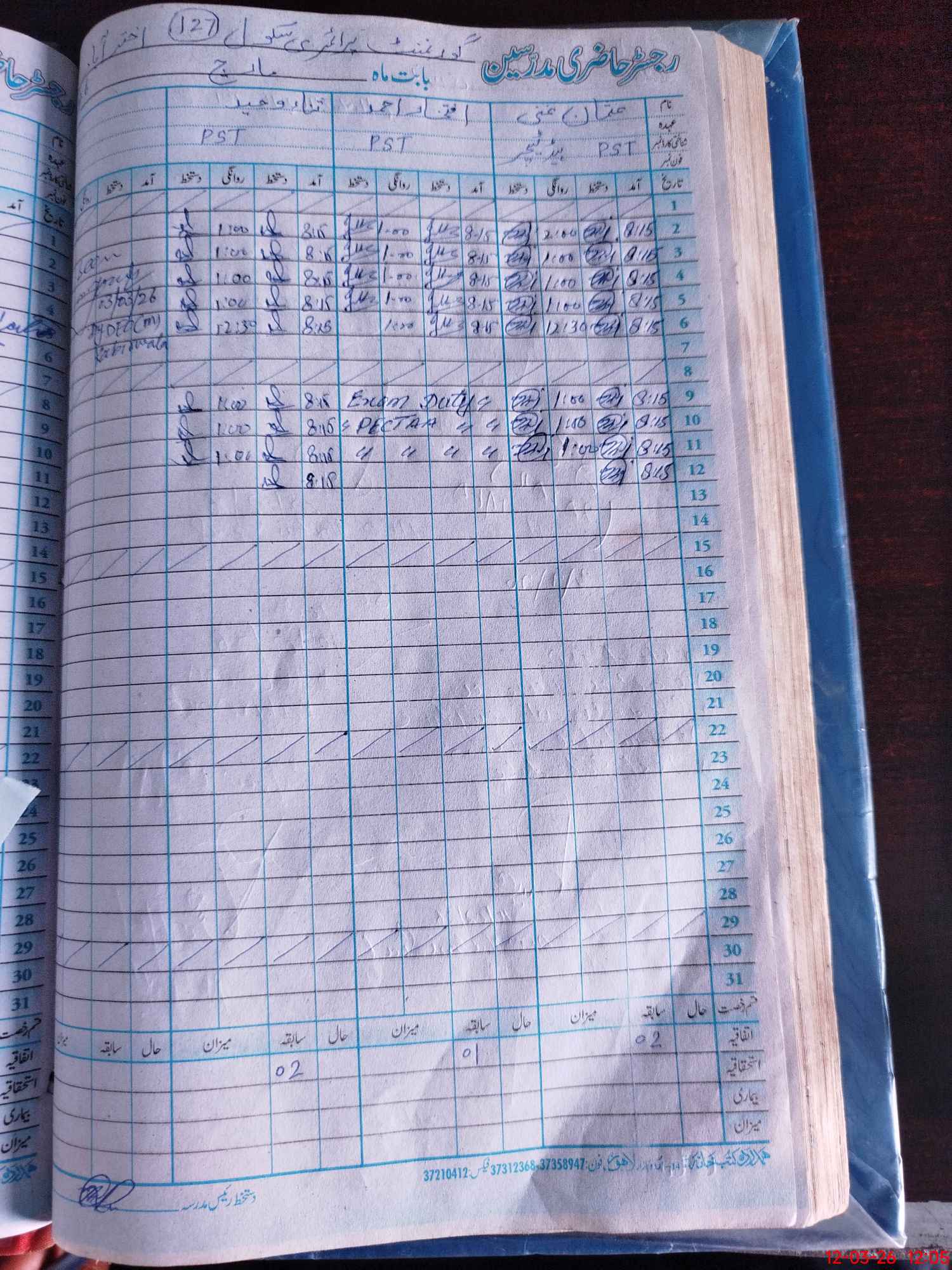 | 36**** | If**** Ah**** | PST Arts | Regular | 0 | 0 | 0 | 0 | 0 | 0 | 0 | 0 | 0 | Exam Duty |