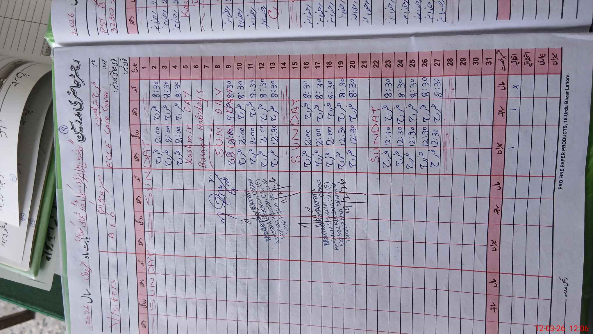 | CNIC | Full Name | Designation | R/C | Absence During Last Calender Month |