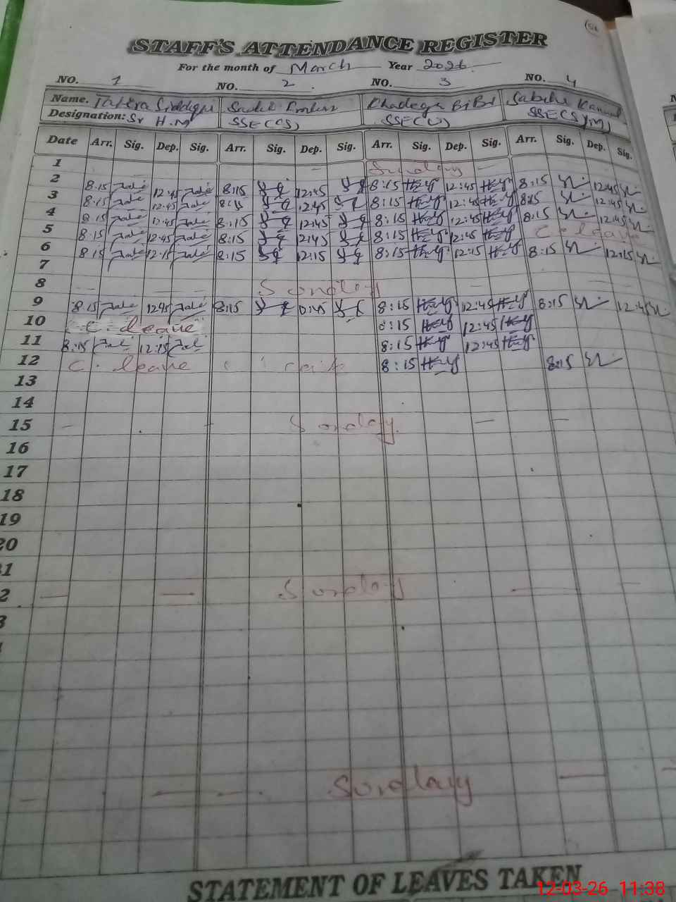 | 37**** | Al**** Ra**** | PST Science/Maths | Regular | 0 | 0 | 0 | 0 | 0 | 0 | 0 | 0 | 0 | Exam Duty |