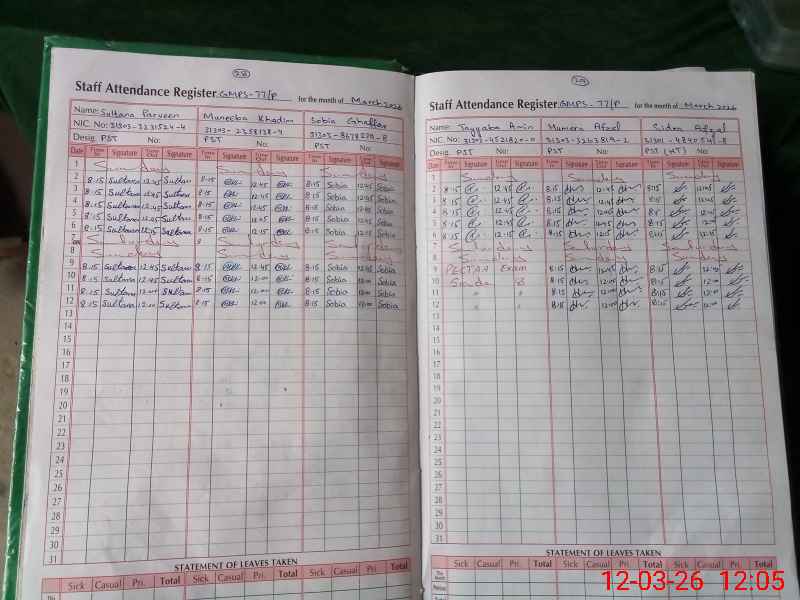 | CNIC | Full Name | Designation | R/C | Absence During Last Calender Month |