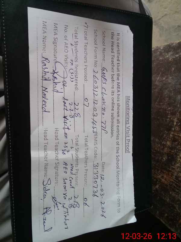 | EMIS Code: 31330736 | Name of School: GMPS CHAK 77/P | |||