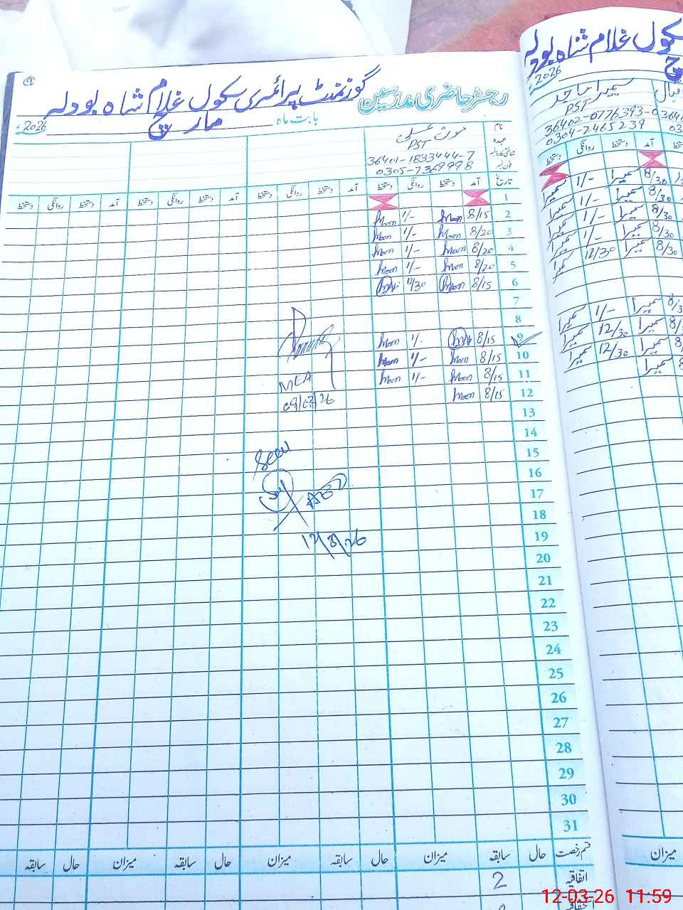 | Name: Sh**** Gu**** Kh**** Designation: (School Headmaster's/Headmistress's) PST Phone/Cell Number: 03**** |