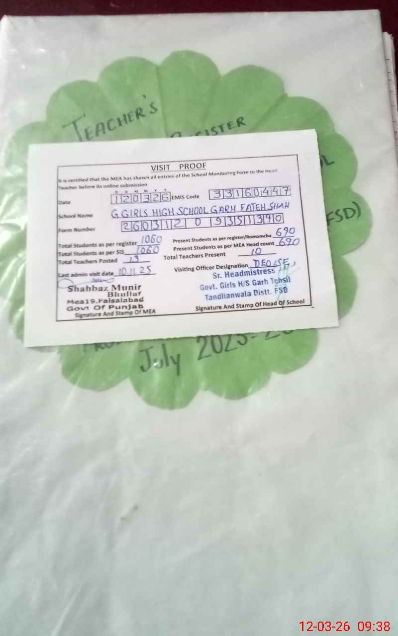 | EMIS Code: 33160447 | Name of School: GGHS GARH FATEH SHAH FSD | |||