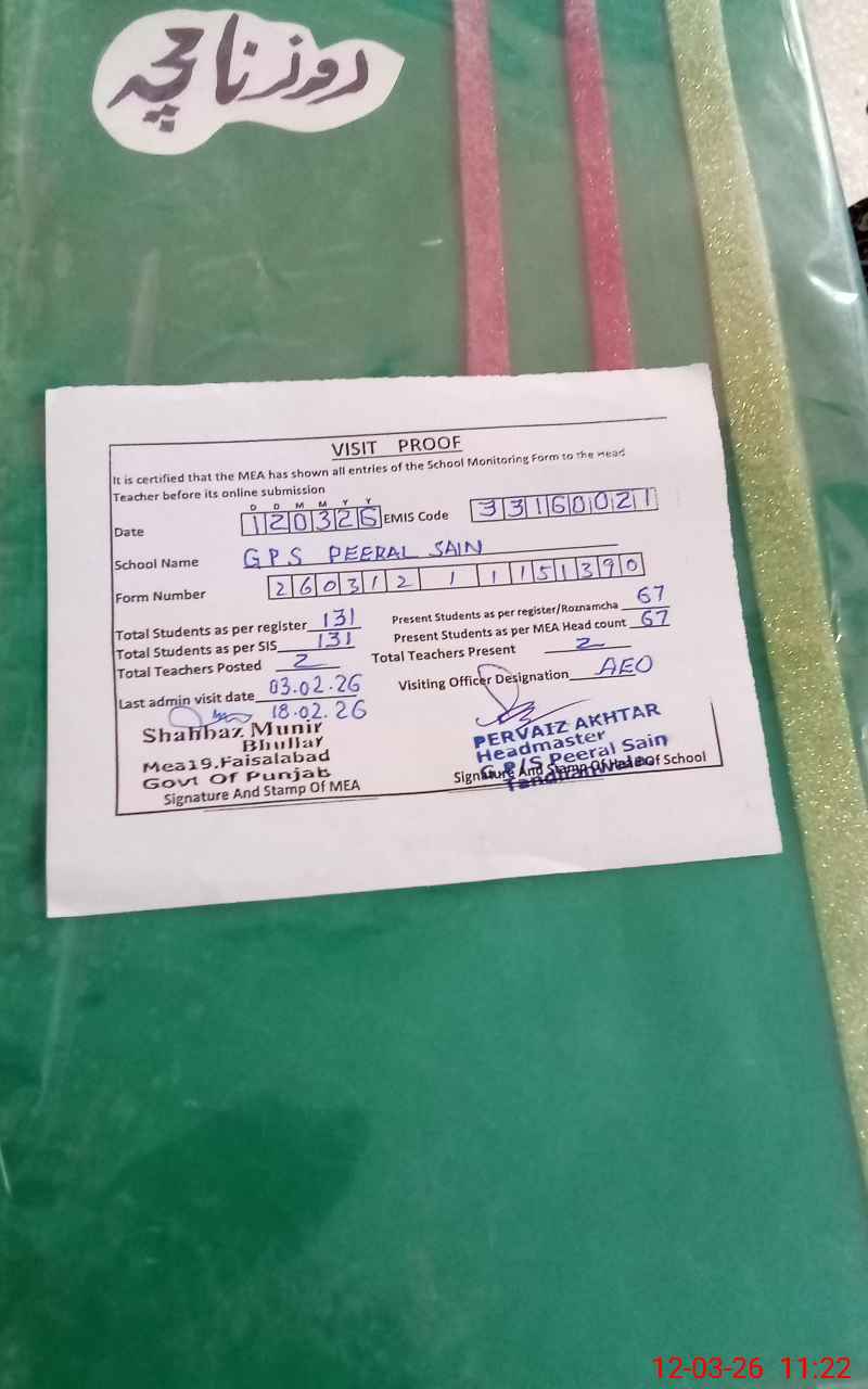 | EMIS Code: 33160021 | Name of School: GPS PEERAL SAIN | |||