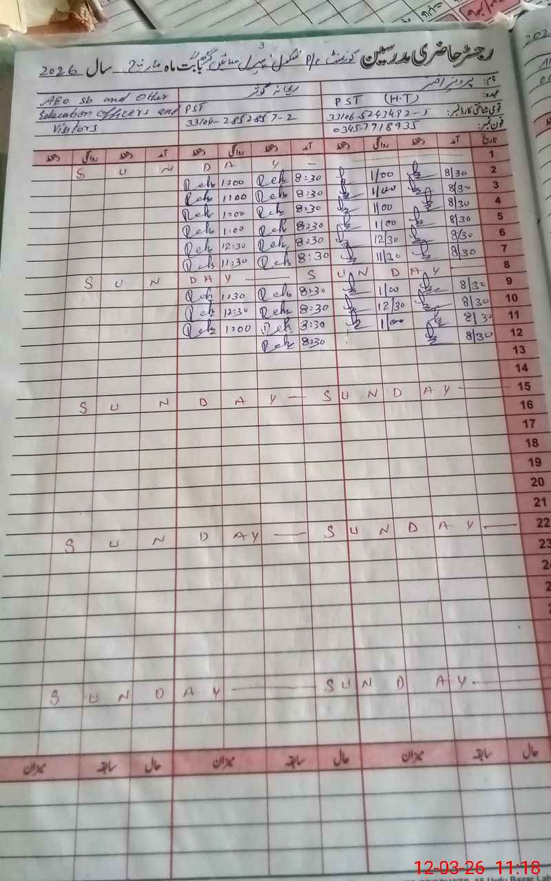 | Name: PE**** AK**** Designation: (School Headmaster's/Headmistress's) PST Phone/Cell Number: 03**** |