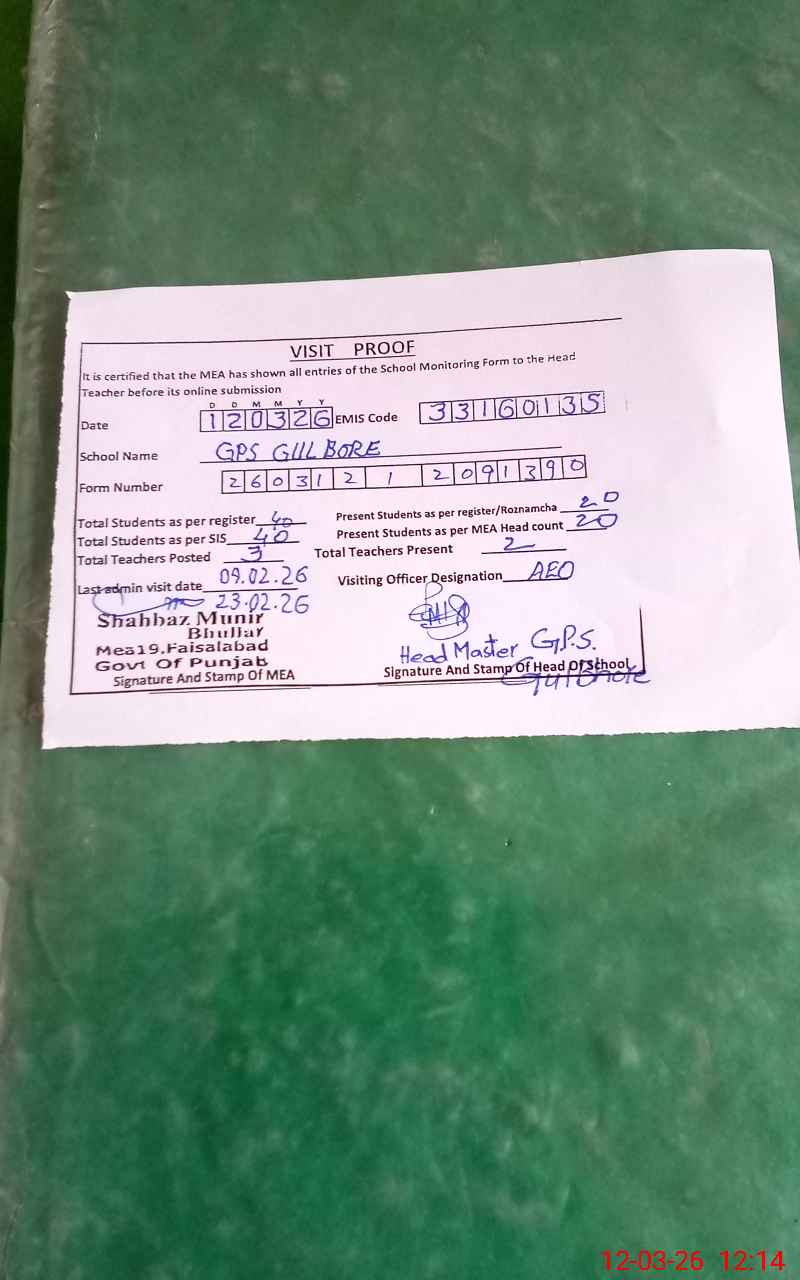 | EMIS Code: 33160135 | Name of School: GPS GUL BHORE TANDLIANWALA | |||