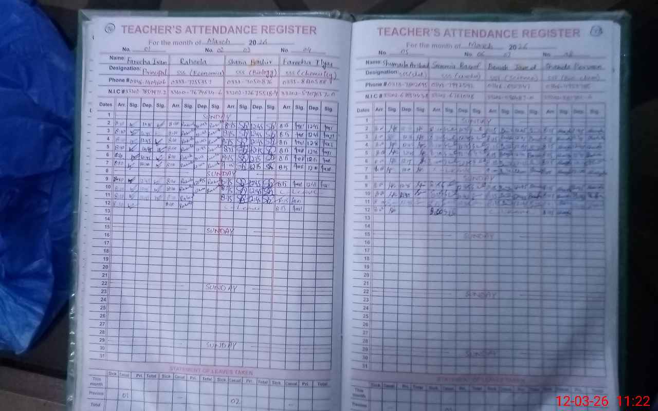 | Name: FA**** IR**** Designation: (School Headmaster's/Headmistress's) PRINCIPAL Phone/Cell Number: 03**** |