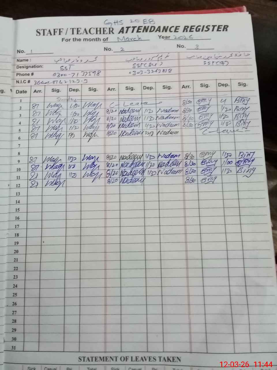 | Name: HA**** M.**** Designation: (School Headmaster's/Headmistress's) SST(G) Phone/Cell Number: 03**** |