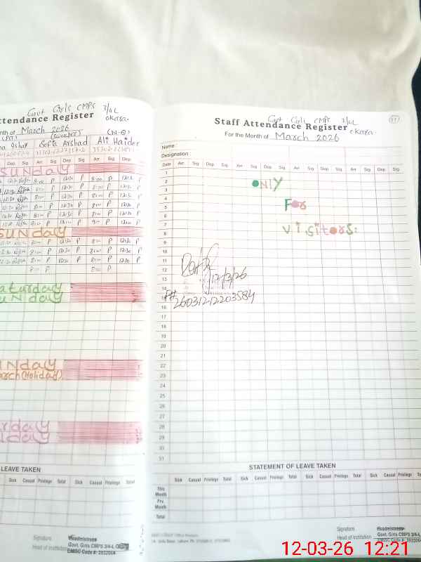 | Name: PA**** AK**** Designation: (School Headmaster's/Headmistress's) S.S.T.(GEN) Phone/Cell Number: 03**** |