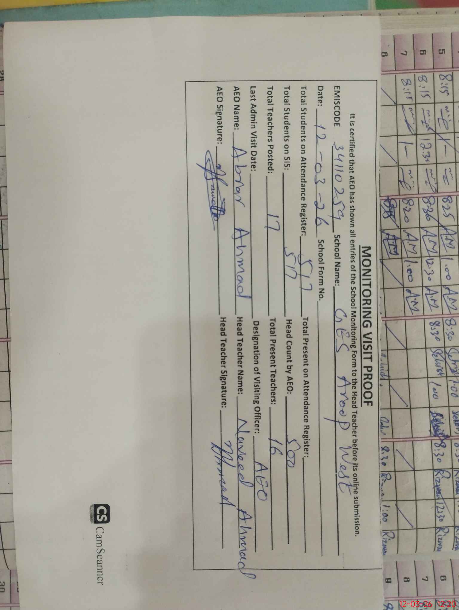| Remarks (Use Separate Page if Required): Ansa Bashir was permanently absent since 22-11-2025 | |||||