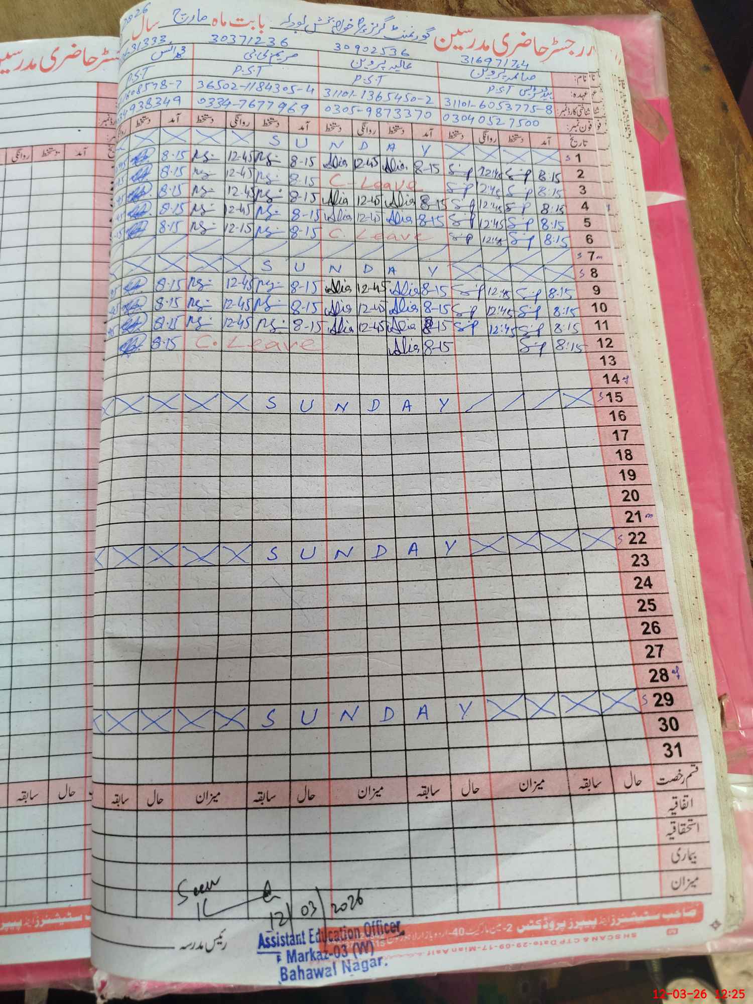 | Name: SA**** PE**** Designation: (School Headmaster's/Headmistress's) PST Phone/Cell Number: 03**** |