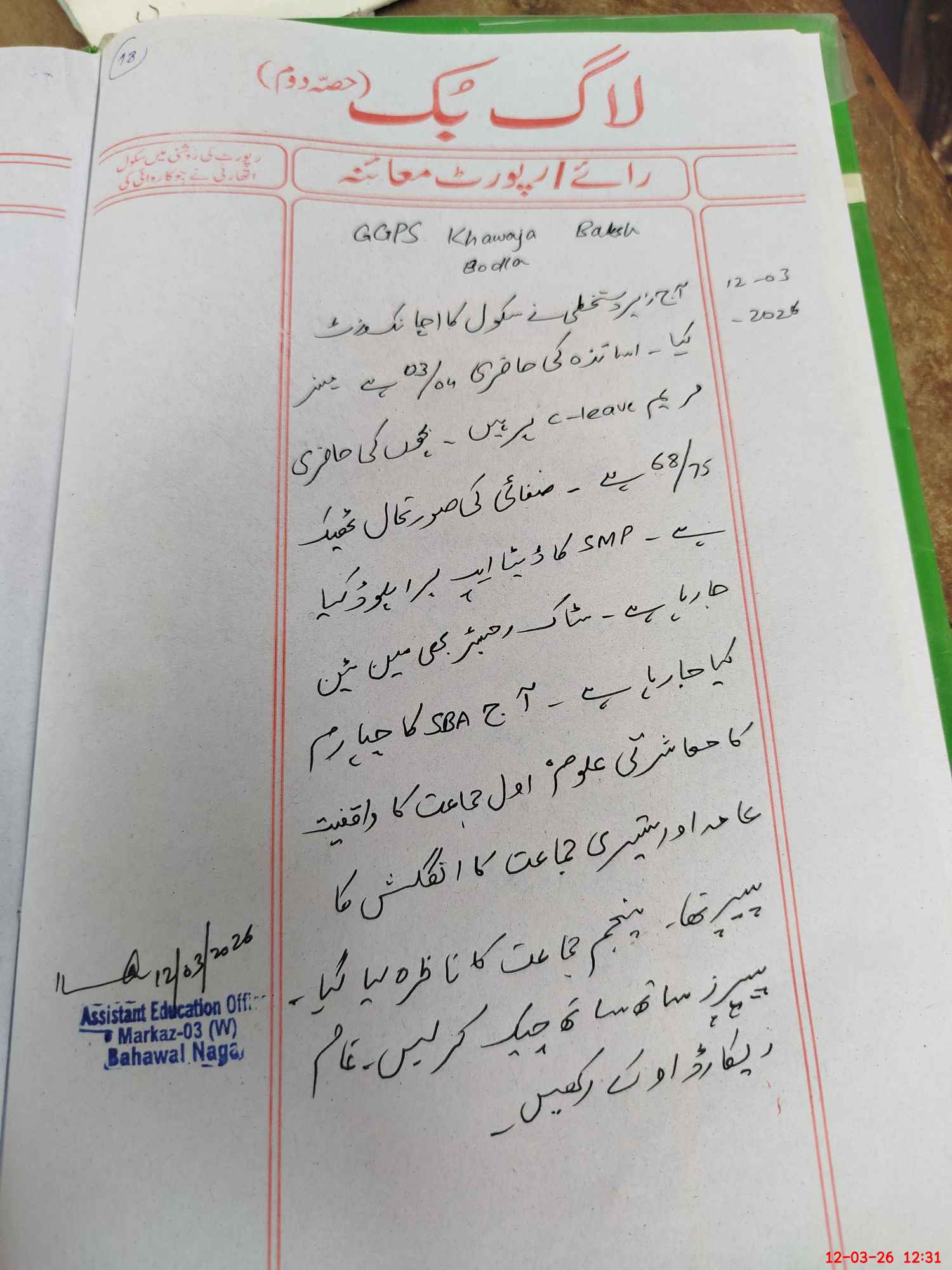 | EMIS Code: 31110491 | Name of School: GGPS KHAWAJA BUKHSH BODLA | |||