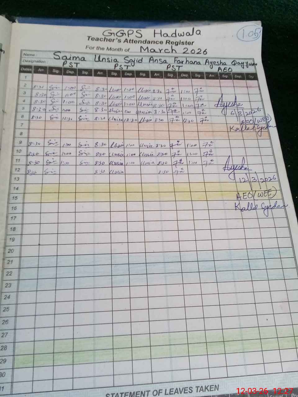 | Name: Sa**** Designation: (School Headmaster's/Headmistress's) PST (Arts) Phone/Cell Number: 03**** |