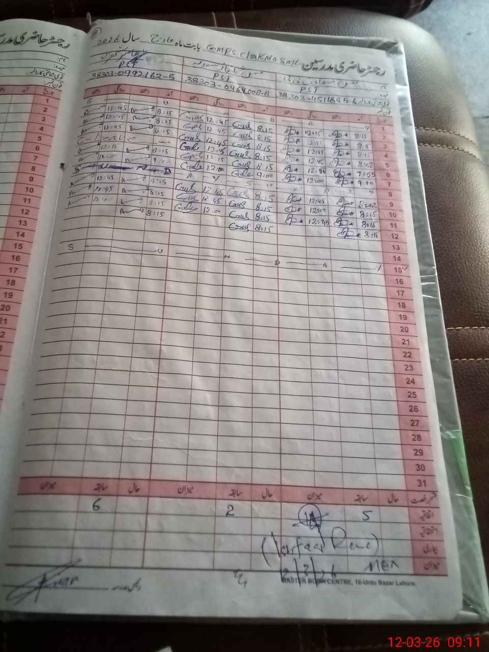 | CNIC | Full Name | Designation | R/C | Absence During Last Calender Month |