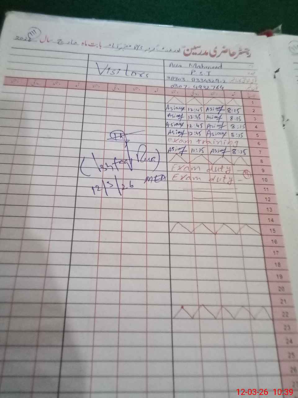 | Name: As**** An**** Designation: (School Headmaster's/Headmistress's) PST Phone/Cell Number: 03**** |