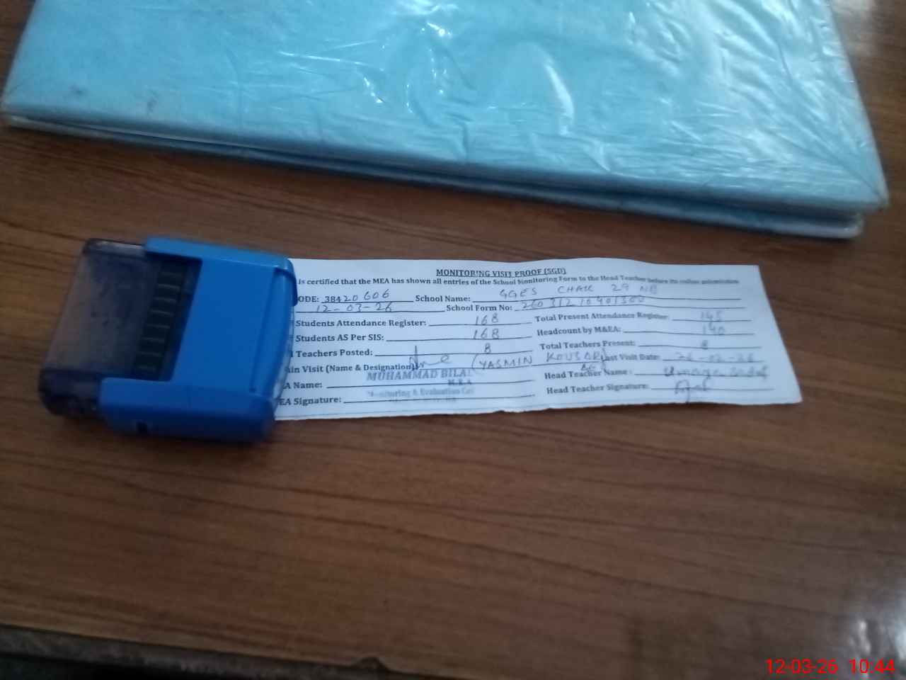 | Attendance Register | Head Teacher | MEA with School | Visit Proof |