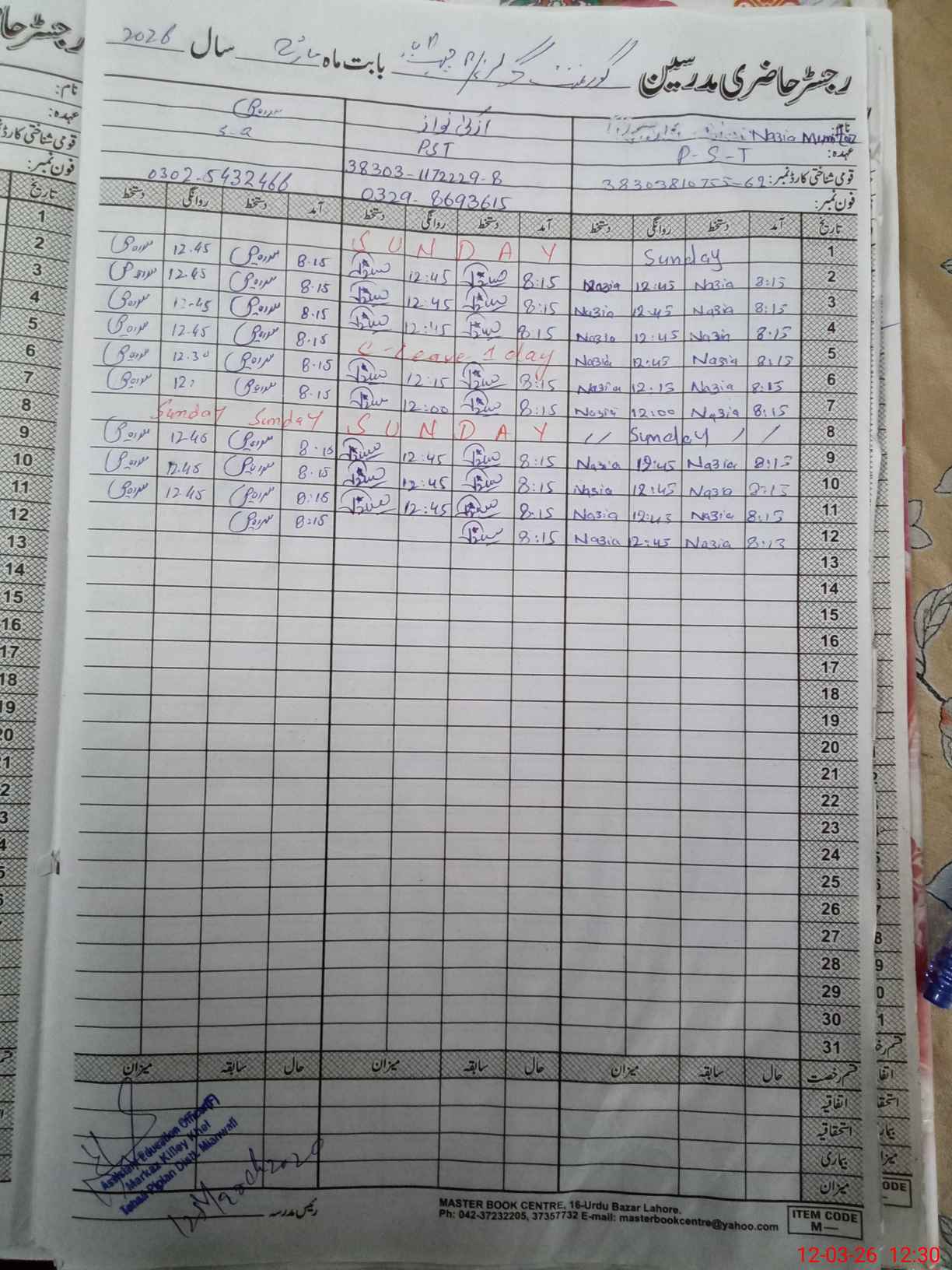 | Name: Ra**** Bi**** Designation: (School Headmaster's/Headmistress's) PST Phone/Cell Number: 03**** |
