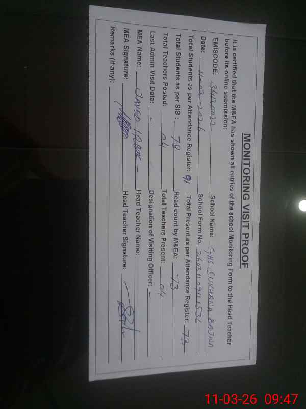 | Certified that this School was Inspected by the Undersigned MEA/DMO Today and the Information Stated Above is as Per Record. | |||||