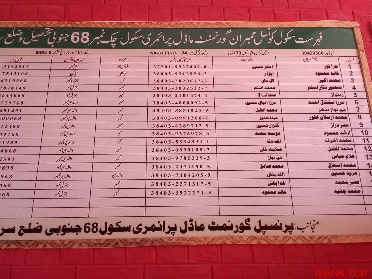| EMIS Code: 38420560 | Name of School: GMPS CHAK NO.68 SB | |||