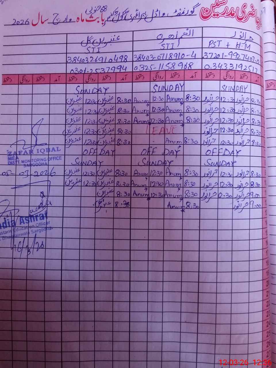 | Monitoring Date: 12-03-2026 | Start Time: 12-03-2026 12:05 PM | End Time: 12-03-2026 12:37 PM | Name of MEA: Sa**** As**** | |