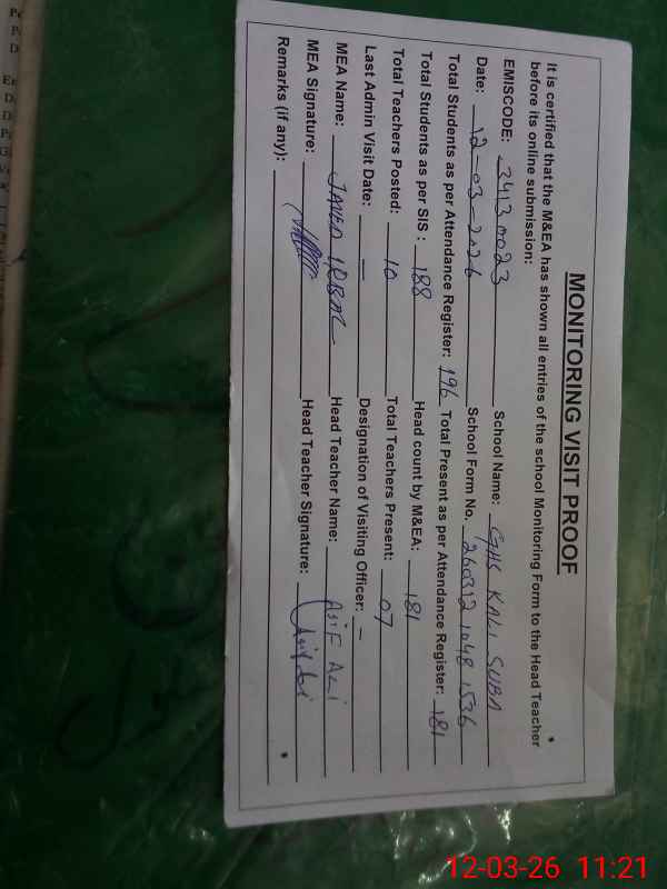 | EMIS Code: 34130023 | Name of School: GHS KALI SOBA KHAN | |||