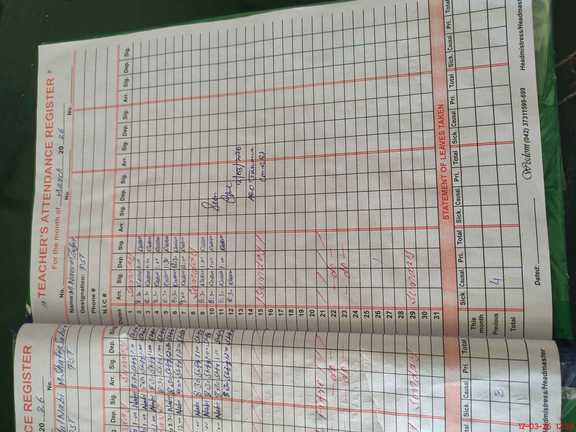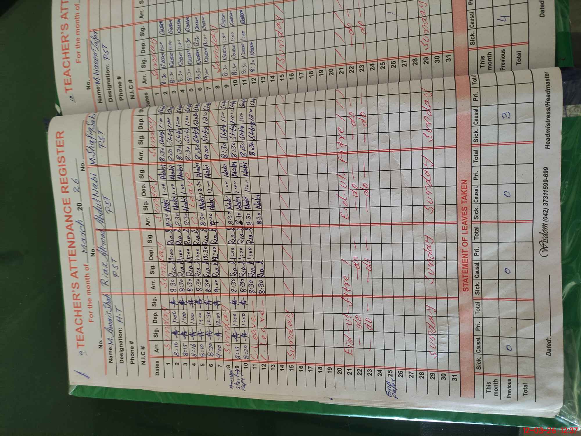 | Name: MU**** An**** Designation: (School Headmaster's/Headmistress's) Pst Phone/Cell Number: 03**** |