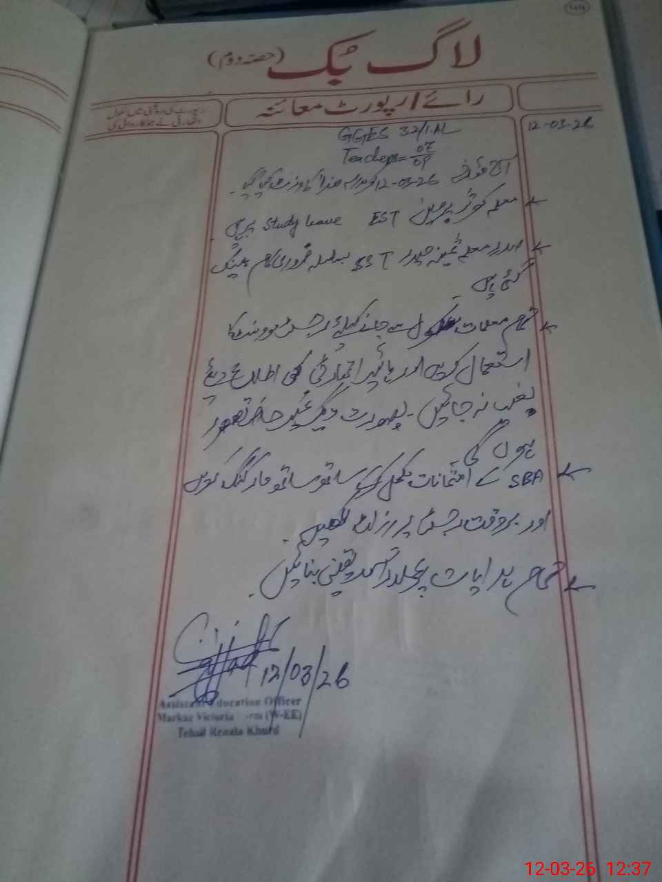| Certified that this School was Inspected by the Undersigned MEA/DMO Today and the Information Stated Above is as Per Record. | |||||