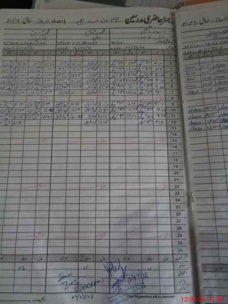 | CNIC | Full Name | Designation | R/C | Absence During Last Calender Month |