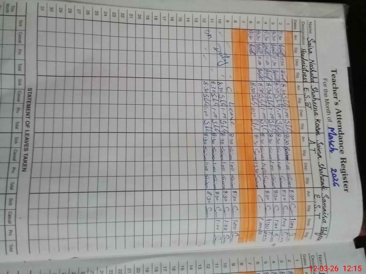 | 31**** | Zu**** Aj**** | PST Science/Maths | Regular | 0 | 0 | 28 | 0 | 0 | 0 | 0 | 0 | 0 | Absent (Un-Authorized) |