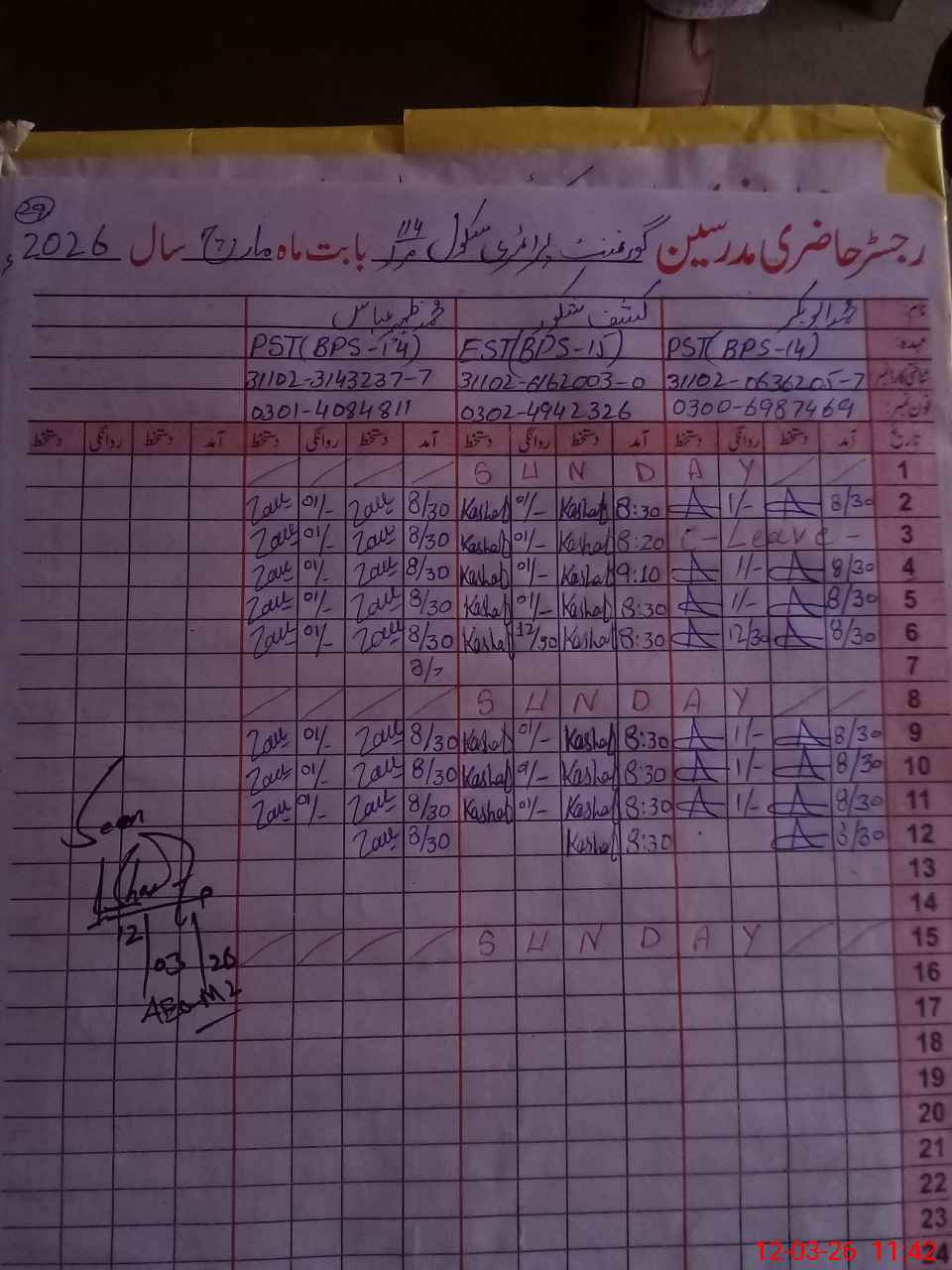 | Name: Mu**** Ab**** Designation: (School Headmaster's/Headmistress's) PST Phone/Cell Number: 03**** |