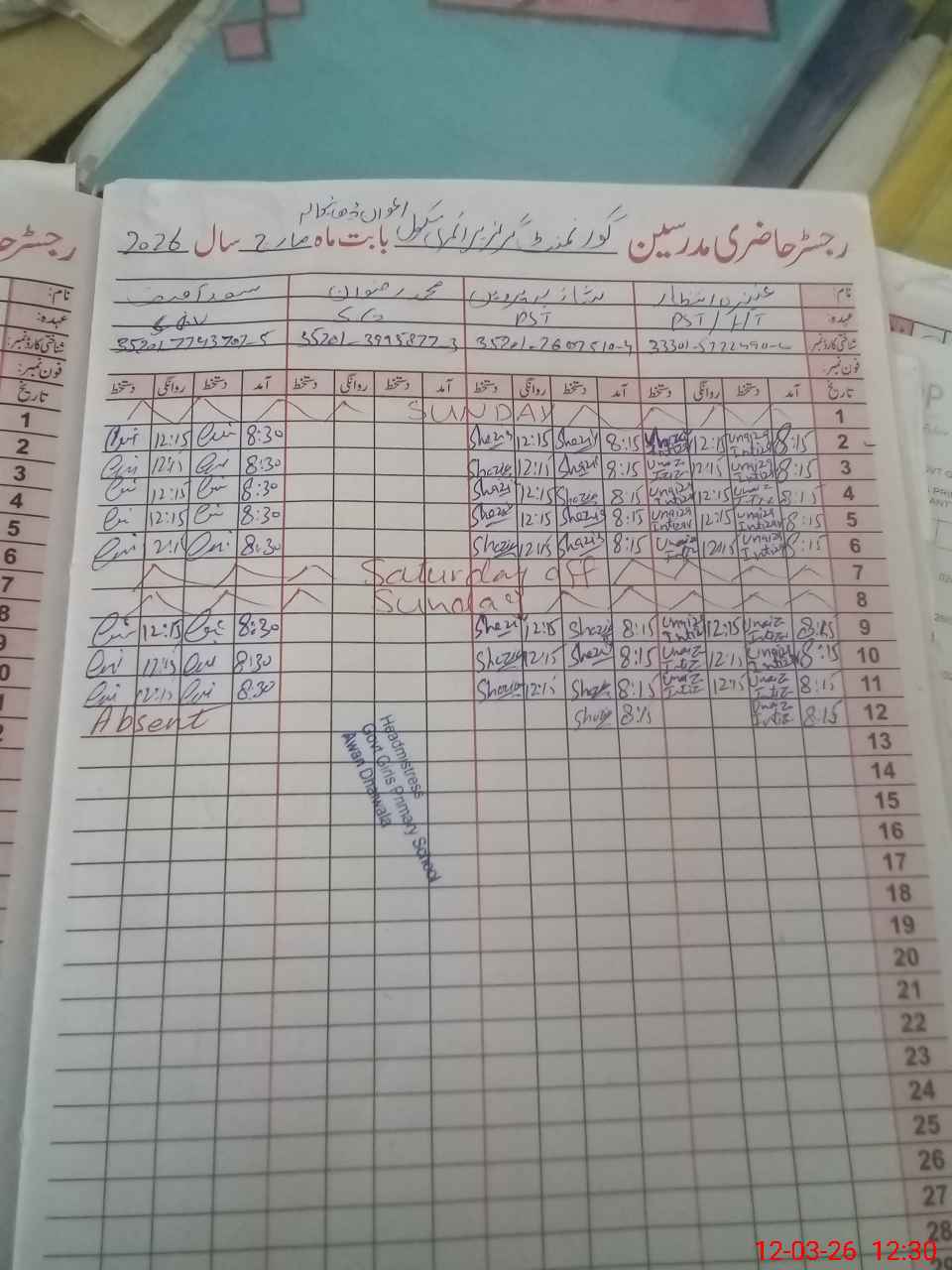 | Name: Un**** In**** Designation: (School Headmaster's/Headmistress's) PST Phone/Cell Number: 03**** |