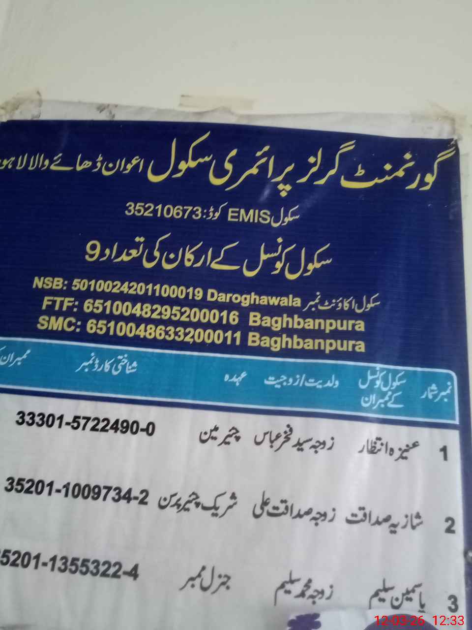 | EMIS Code: 35210673 | Name of School: GGPS AWAN DHAI WALA | |||