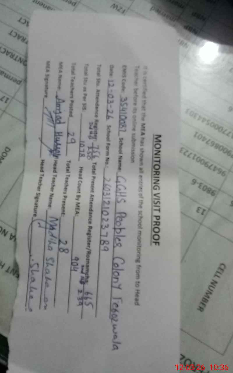 | EMIS Code: 35410087 | Name of School: GGHS PEOPLES COLONY FEROZWALA | |||