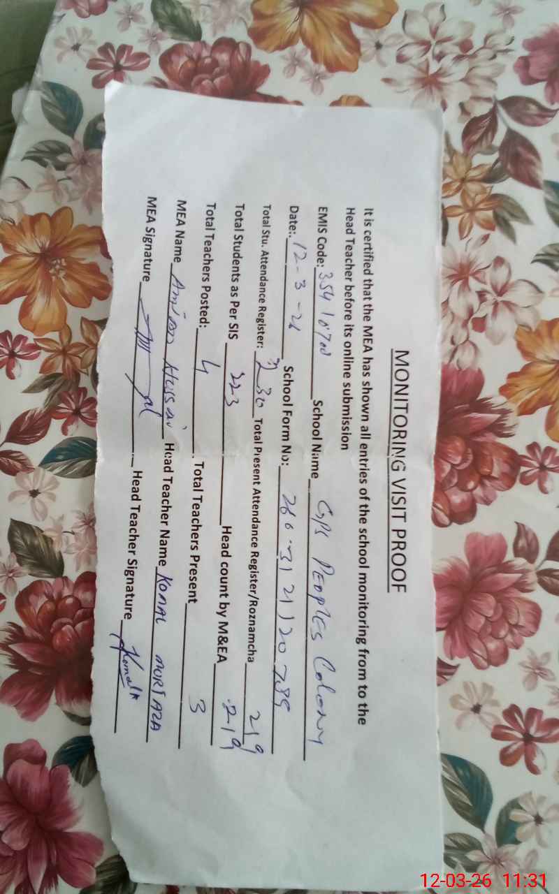 | EMIS Code: 35410708 | Name of School: GPS PEOPLES COLONY | |||