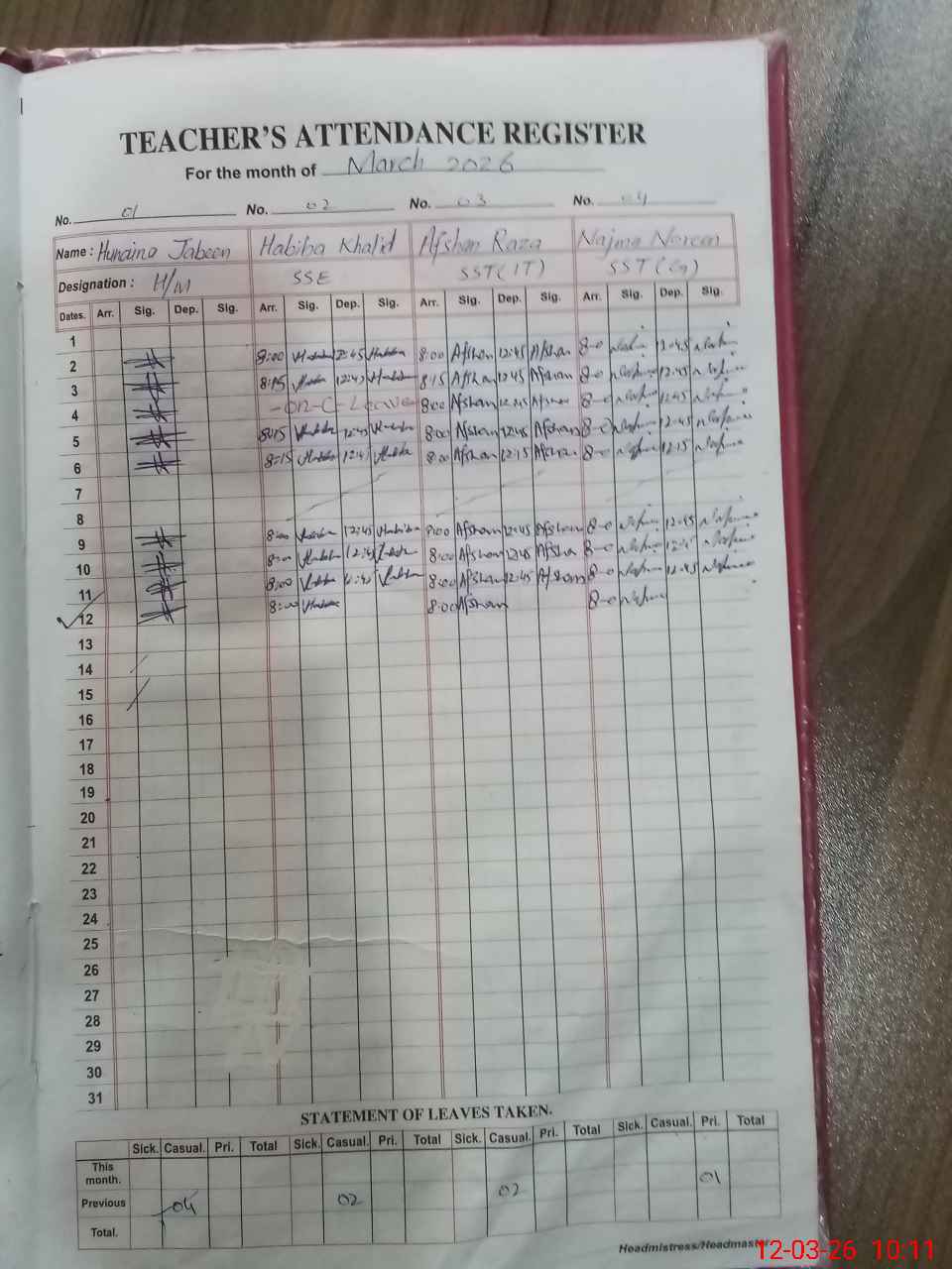 | 36**** | Su**** Pa**** | PST Arts | Regular | 0 | 0 | 0 | 0 | 0 | 0 | 0 | 0 | 0 | Exam Duty |