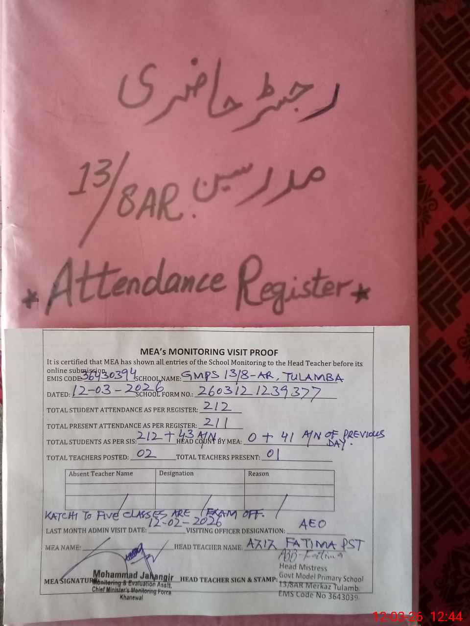 | EMIS Code: 36430394 | Name of School: GMPS 13/8-AR, P/O 20/8-R, TULAMBA | |||