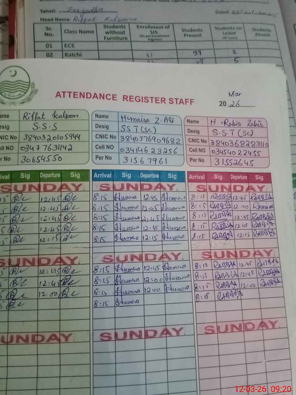 | Name: RI**** KA**** Designation: (School Headmaster's/Headmistress's) IN CHARGE Phone/Cell Number: 03**** |