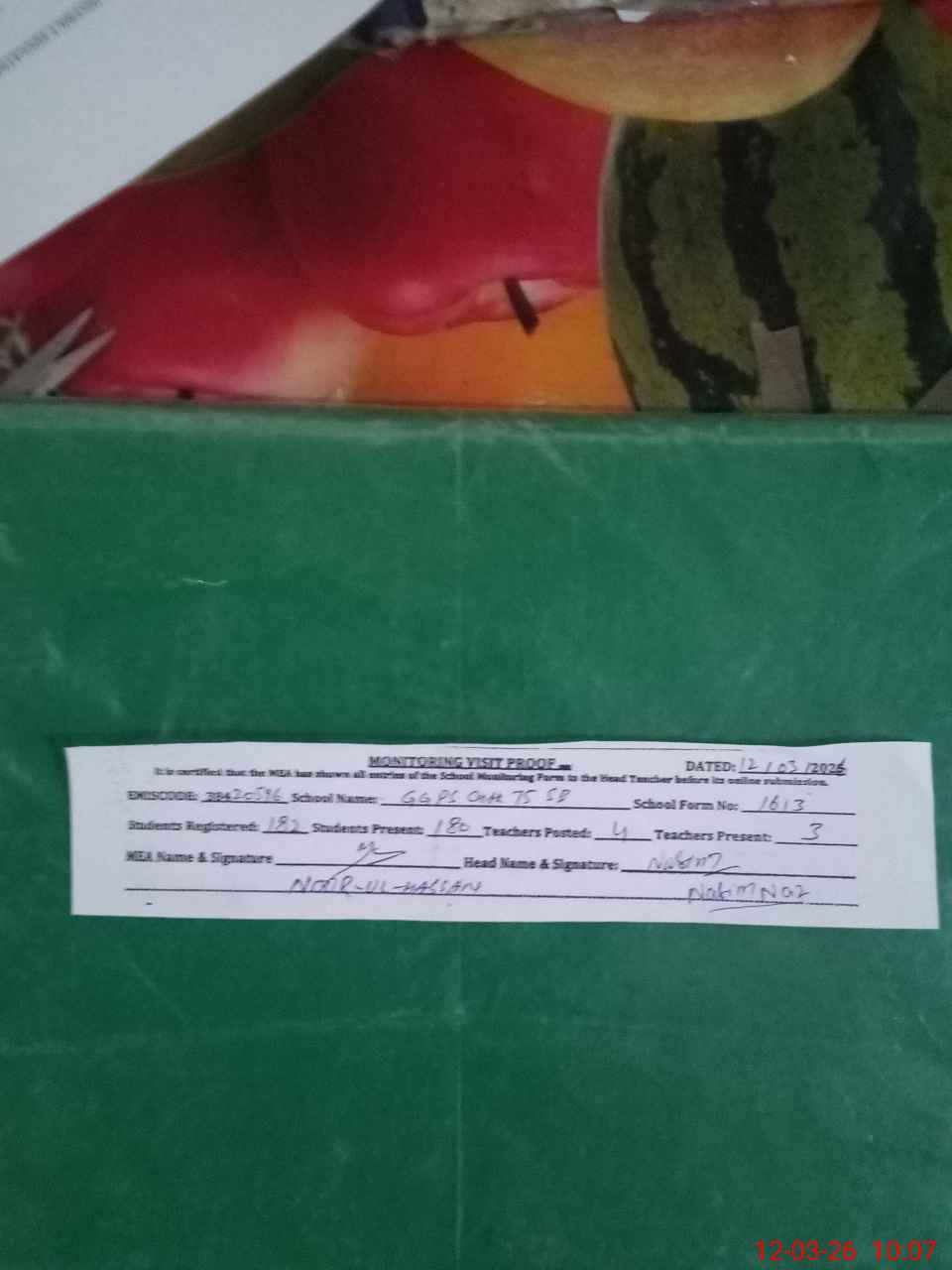 | Attendance Register | Head Teacher | MEA with School | Visit Proof |