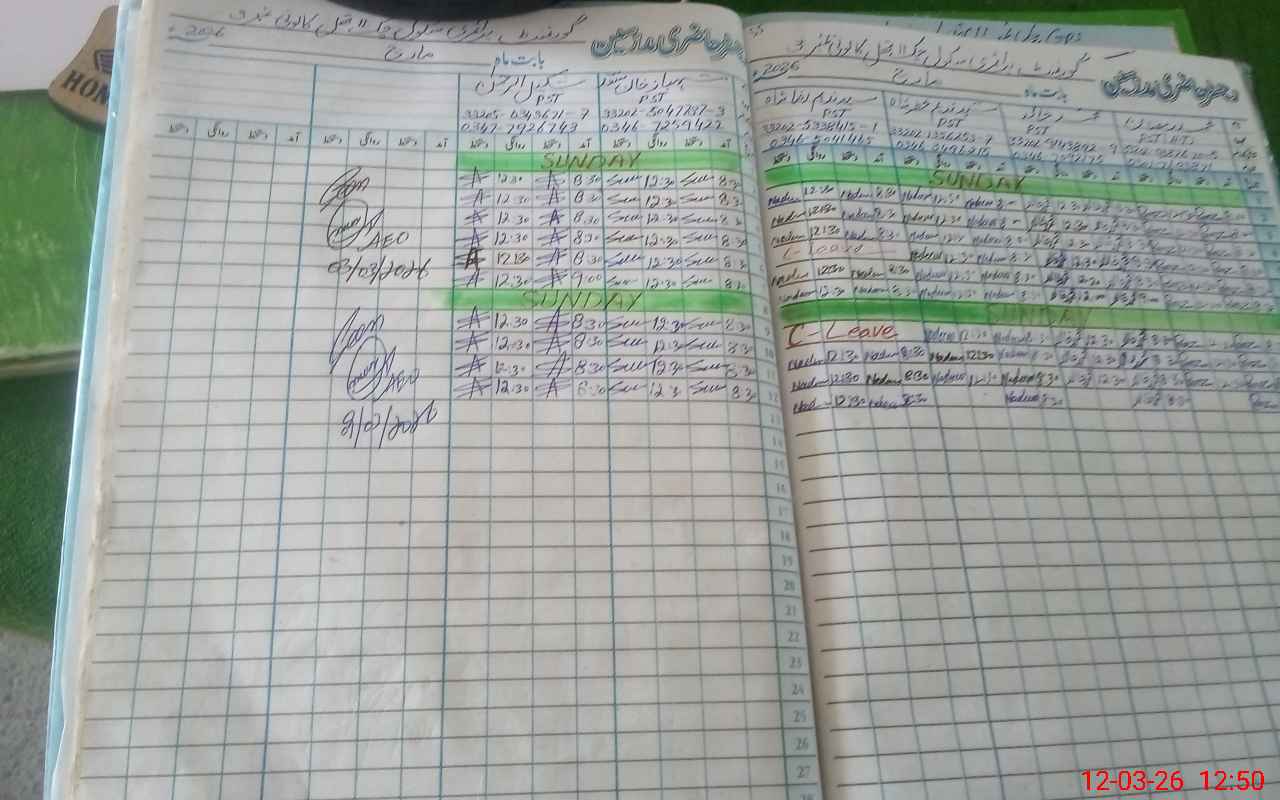 | CNIC | Full Name | Designation | R/C | Absence During Last Calender Month |