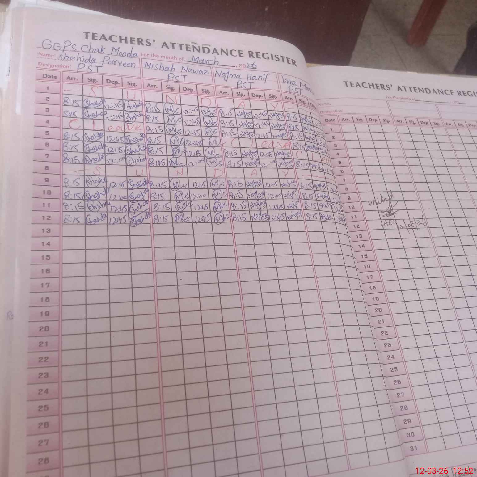 | Monitoring Date: 12-03-2026 | Start Time: 12-03-2026 12:40 PM | End Time: 12-03-2026 12:53 PM | Name of MEA: Mu**** Sa**** Ak**** | |