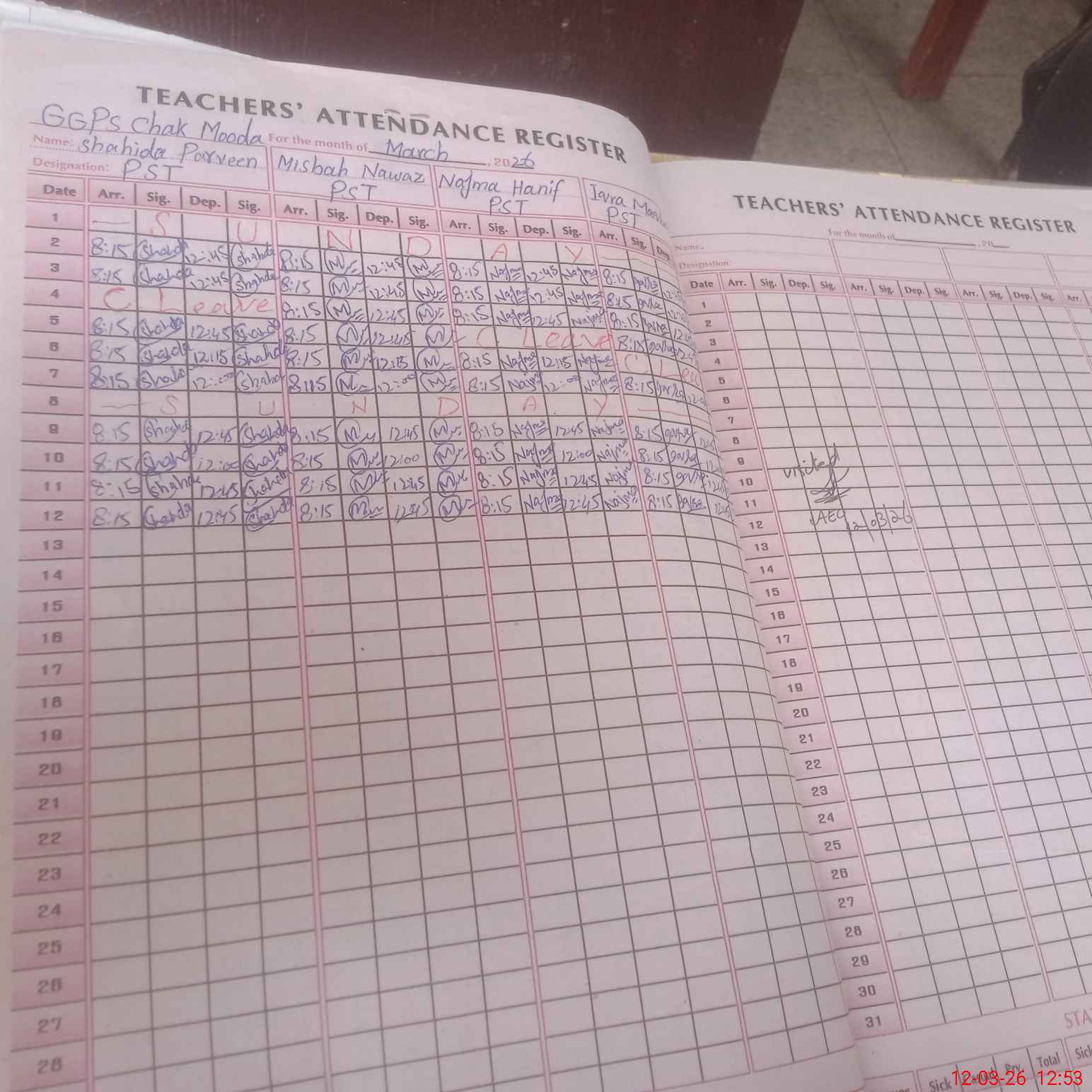 | Attendance Register | Head Teacher | MEA with School | Visit Proof |