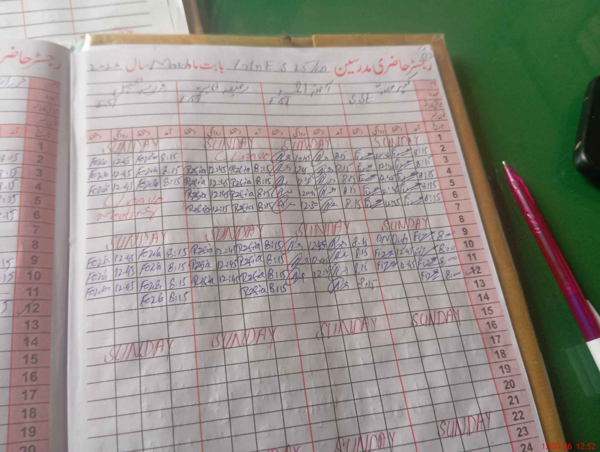 | CNIC | Full Name | Designation | R/C | Absence During Last Calender Month |