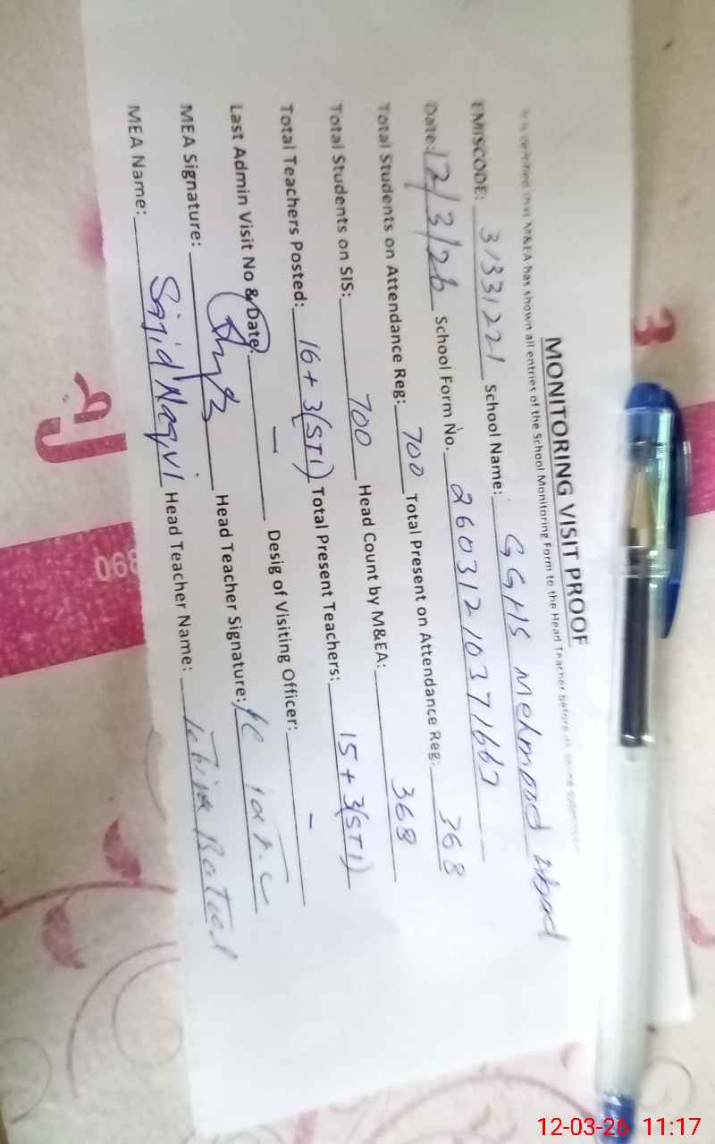 | EMIS Code: 31331221 | Name of School: GGHS MEHMOOD ABAD | |||