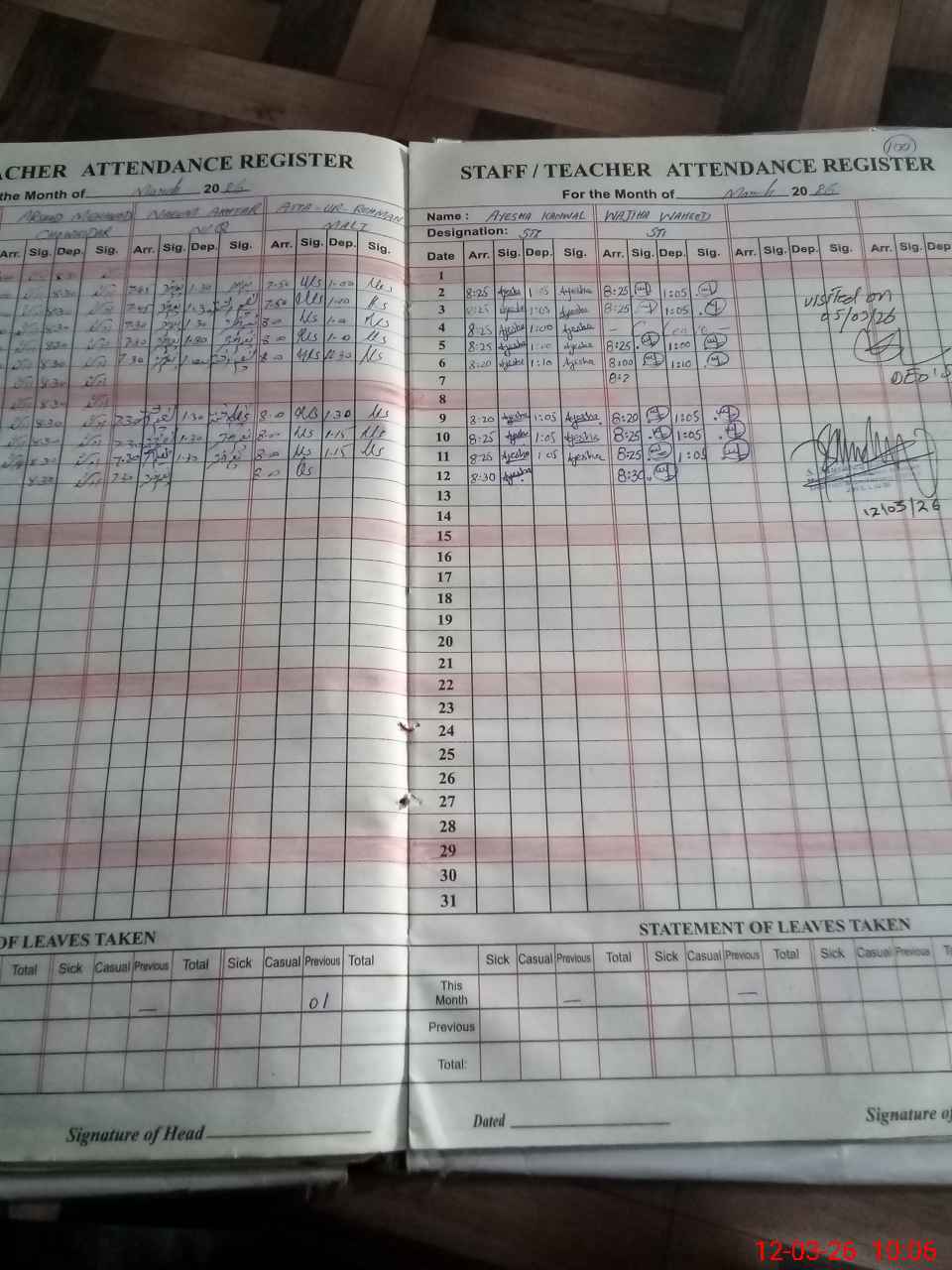 | 37**** | Sh**** Sa**** Kh**** | PST Science/Maths | Regular | 1 | 0 | 0 | 0 | 0 | 0 | 0 | 0 | 1 | Exam Duty |